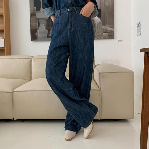 여자 가을 통큰 와이드핏 홍대룩 청바지