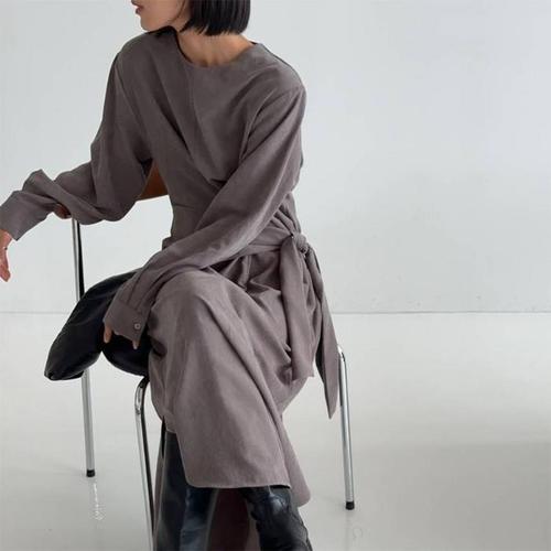 [옷자락]여자 가을르 스트랩 피치 홍대룩 긴팔 롱 원피스