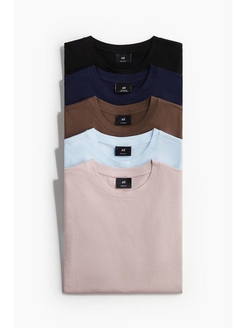 [에이치엔엠] 레귤러핏 티셔츠 5피스 세트 핑크/라이트 블루/브라운 1216851013