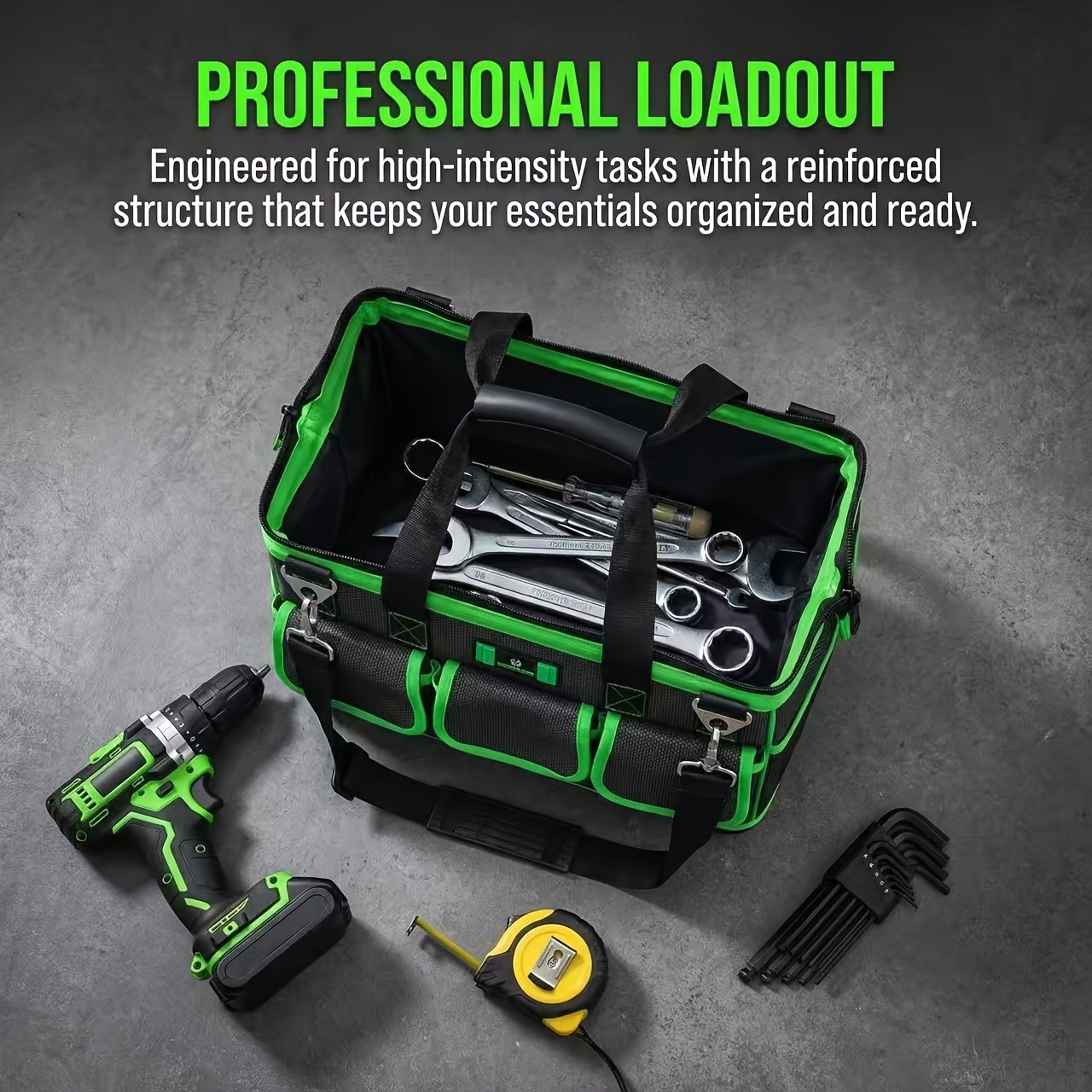 TEMU 고하중 전문가용 공구 수납 가방, 14인치 공구 파우치, 다중 수납공간 및 포켓, 조절식 어깨끈 및 인체공학적 손잡이 - 튼튼한 지퍼 잠금장치. 목수, 배관공, 전기기사, 건설업자 및 전문가에게 적합. 내구성 있는 백팩 스타일 공구 케이스, 작업 현장 작업을 위한 이상적인 선택