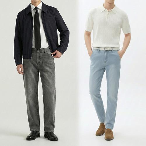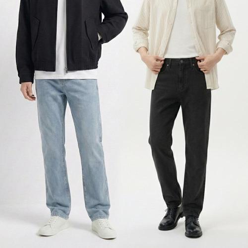 [화이트빌딩]남자 청바지 일자 슬림 스판 테이퍼드 빅사이즈 세미 연청 진청 블랙진 청바지