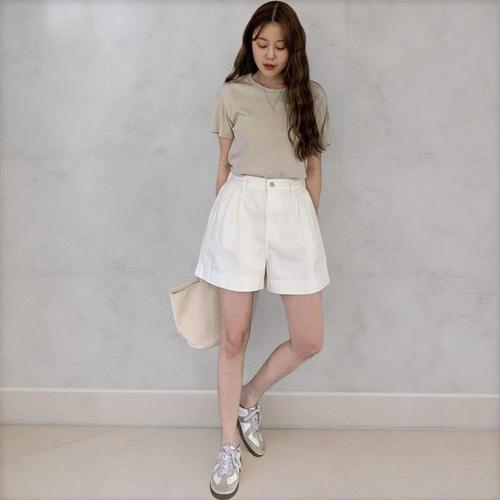 [다잇템]여성 화이트 와이드핏 하프 면반바지 반바지
