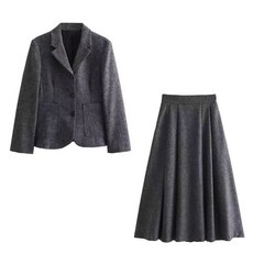 최화정 투피스 셋업 미니멀 울 블렌드 미디 스커트 세트