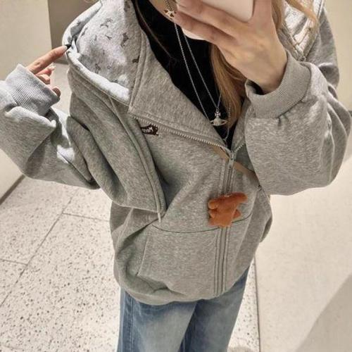 [셀러허브_여성트랜드패션]ONM 강아지 자수 패턴 루즈핏 회색 후드집업 긴팔티 NF-31