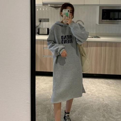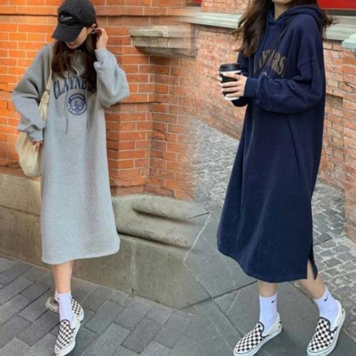 [오너클랜]인기상품 기모 후드 여성 원피스 레터링 디자인 일상복 [WFLLM0A_260305]