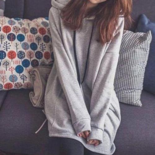 블레스유 겨울 기모 여성 긴팔 롱 오버핏 데일리 무지 후드 플레어 원피스