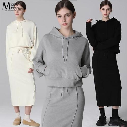 [유야]여성 면 나그랑 후드티 카고 롱스커트 세트 -FSST0098- 봄 가을