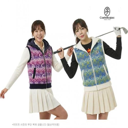 까스텔바작 골프 여성 부클 니트 우븐 믹스 그라데이션 후드 조끼 BGDWSV-703