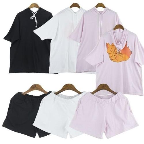 [엄지척]오버핏 여우 캐주얼 반팔후드세트_20434559_667501