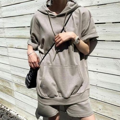 [엄지척]후드 여성 반팔 반바지 루즈핏 디자인 캐주얼 세트 여_20436154_667501