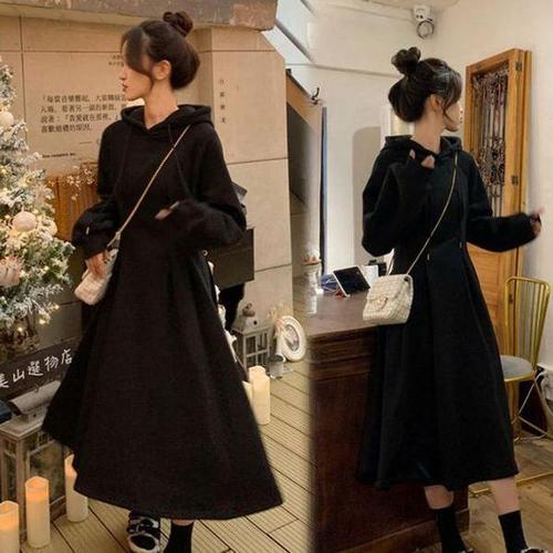 페이준 여성 봄 가을 후드 원피스 심플 캐주얼 후드 긴팔 A라인 원피스 IM6681