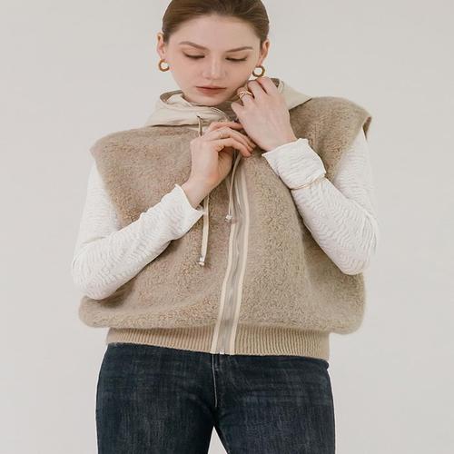 [르샵]니트 후드 탈부착 밴딩 패딩 베스트 (BPAVT009A)