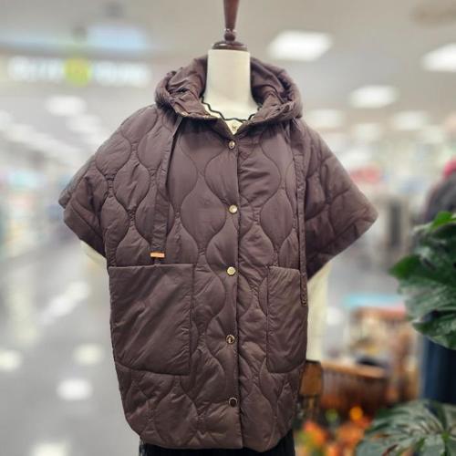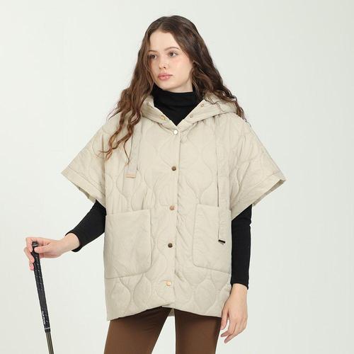 (WFKWRH5) 물결패딩 후드넥 케이프 조끼