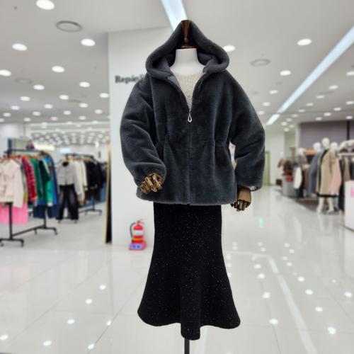 [쉬즈프리티] 하이닝인조밍크후드코트 L까지_여성퍼코트