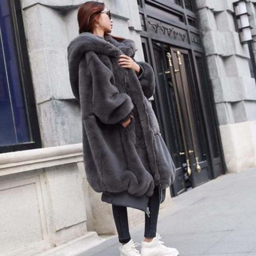 [셀럽하우스]겨울 OEWQ6725 퍼코트 페이크 털아우터 오버핏 후드 롱 코트