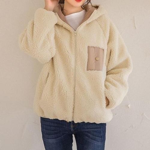 [끌레아]배색 뽀글이 양털 퍼 후드집업 플리스 자켓