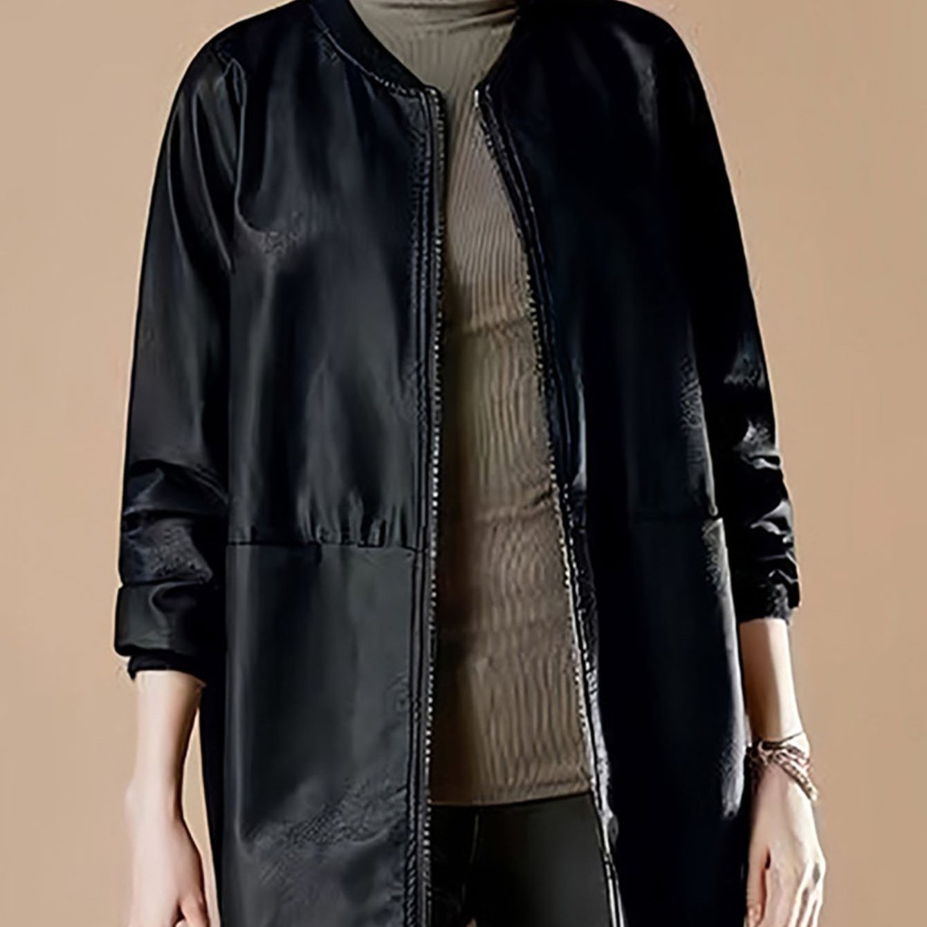 TEMU 여성 봄가을 자켓 루즈핏 하프기장 스타일리쉬하게 매치하기 좋은 소프트 빅포켓 솔리드 디자인 캐주얼 통근 야구복 코트 SLIM GIRL 슬림소녀