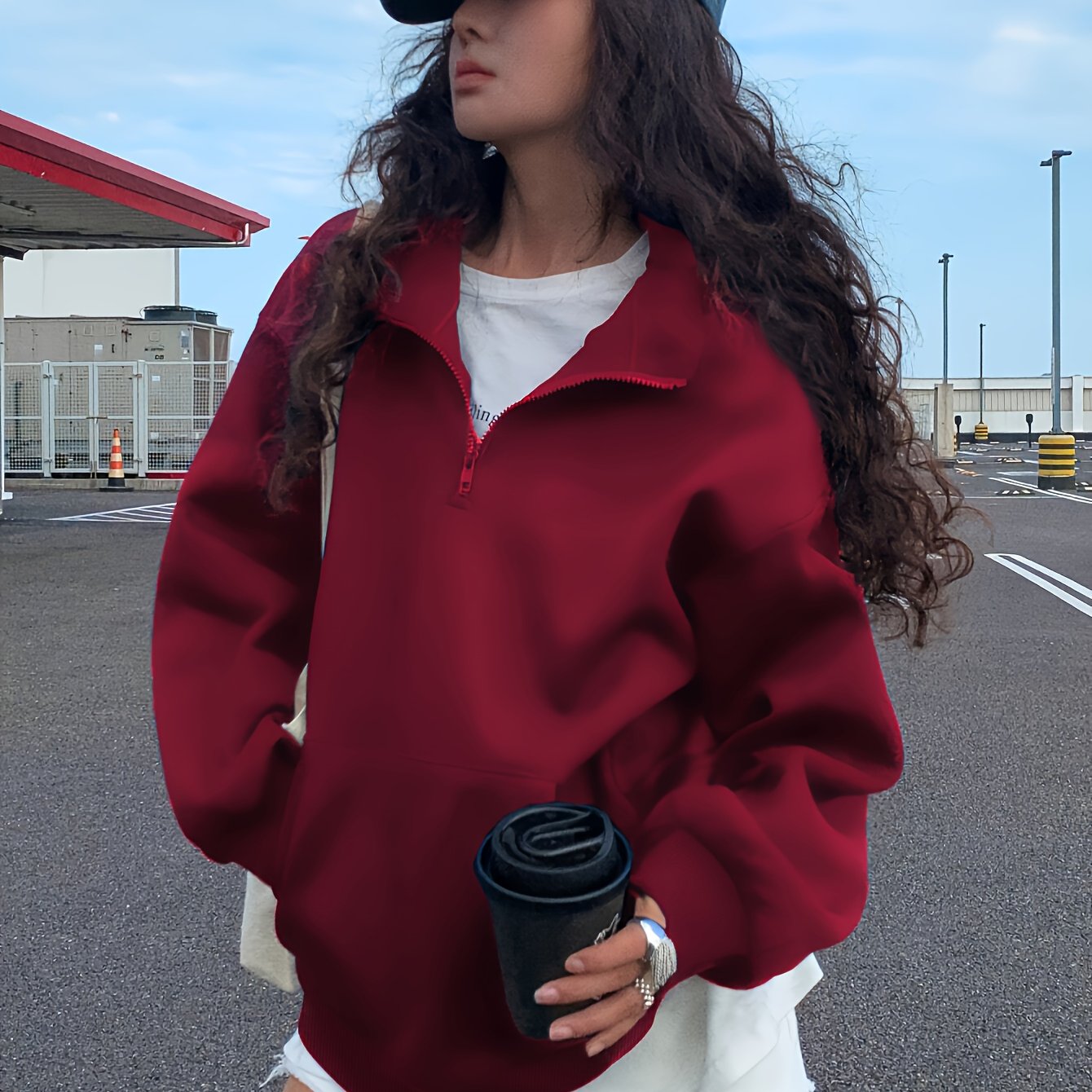 TEMU Y2K 여성 패션 따뜻한 하이넥 턴칼라 하프집업 스웨트셔츠, 2025 가을/겨울 신상 솔리드 컬러 긴소매 캐주얼 캥거루 포켓 아우터웨어, 겨울 아우터웨어,캐주얼 웨어,하프지프 디자인,부드러운 질감,포근한 소재,스타일리시 풀오버,오피스 캐주얼,대학생
