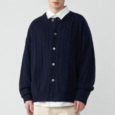 팀스핏 남성용 빅사이즈 오버핏 케이블 라운드 니트 가디건