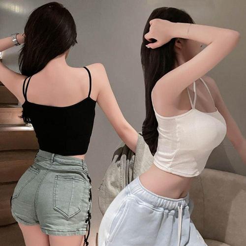 여름 여성 자르기 탑 홀터 탱크 슬림 스트리트웨어 인기 여학생 전 경기 한국 스타일 데일리 캐주얼 민소매 셔츠