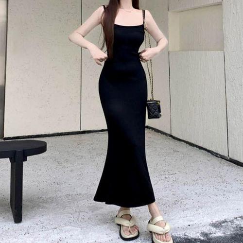 데일리 휴양지룩 여성용 여유핏 베이직 스트랩탑 맥시미니드레스