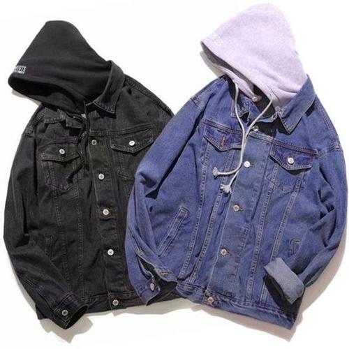[에이치플러스몰]후드 탈부착 청자켓 흑청 오버핏 데님 자켓 코디