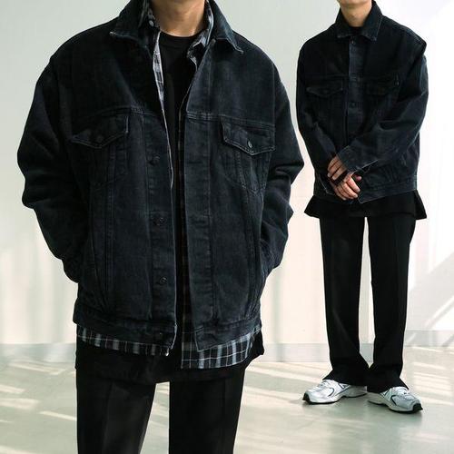 [맨즈북]스톤워싱 오버핏 남자 흑청자켓 블랙 데님 트러커자켓 봄 가을