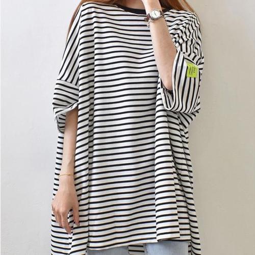 [리빌모아]여자 루즈핏 스트라이프 롱 반팔티 DMSW-TSH-SHHE56-화이트