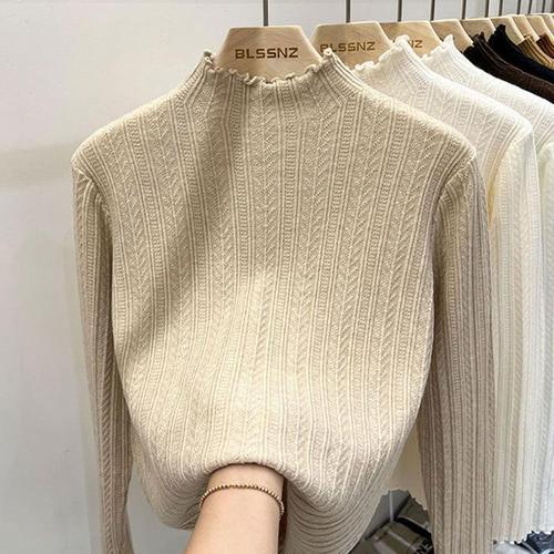 여자 민무늬 데일리 반목 흰티 레이어드 겨울 티셔츠