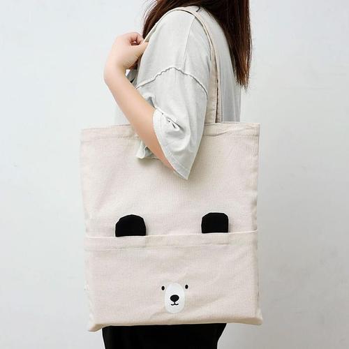 [BZJKPIVB_4B]쫑긋 에코백 화이트 귀여운 가벼운 천가방