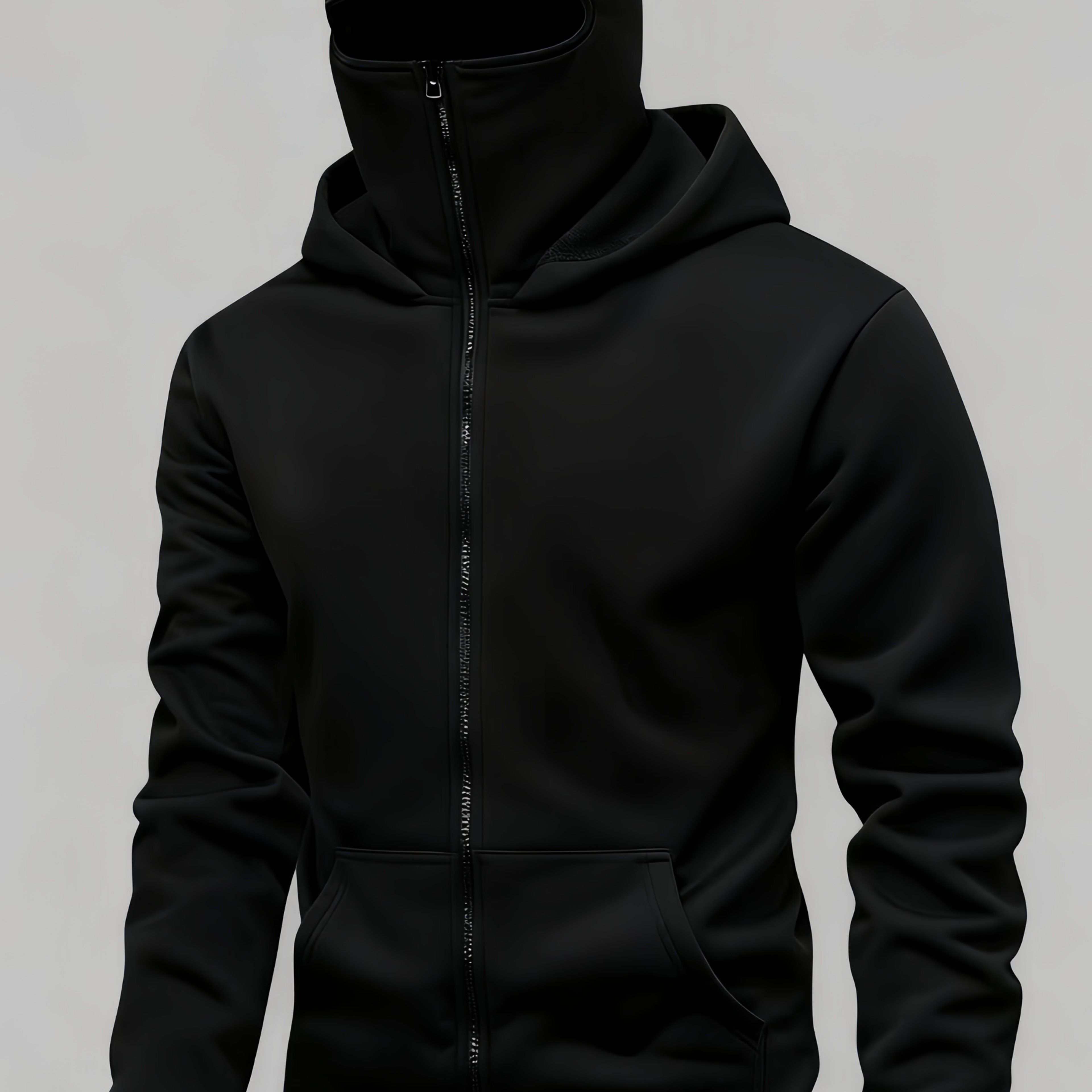 TEMU 풀집 후드티, 아웃도어 방풍, 스트리트 패션, 캐주얼, 얼굴 보온, 마스크 포함 (얼굴 커버) 솔리드 컬러 후드 따뜻한 스웨트셔츠