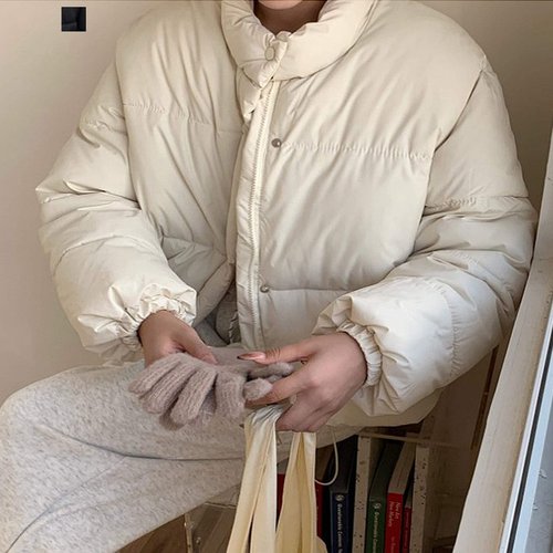 [페이릿] [~88까지]데크 무광 크롭 밑단 스트링 숏패딩