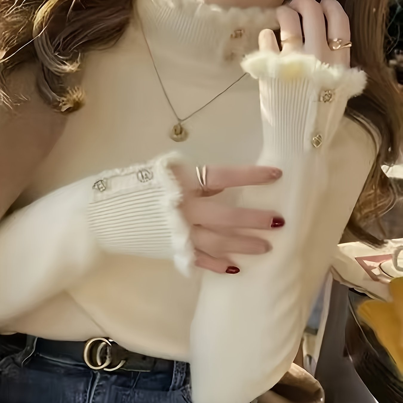 TEMU 여성용 러플, 기모 안감, 하이넥 스웨터