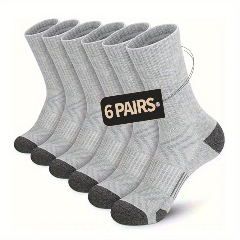 TEMU 남성용 스포츠 양말 6켤레 세트 (가을/겨울용), 트렌디한 컬러 블록 디자인, 야외 하이킹 및 피트니스 활동에 적합