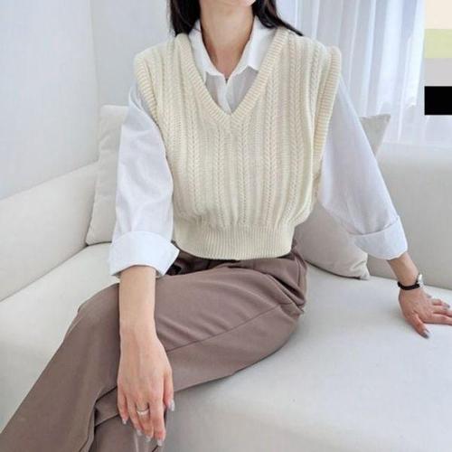 [에이치플러스몰]여자 브이넥 베스트 니트 조끼 DJJ1060