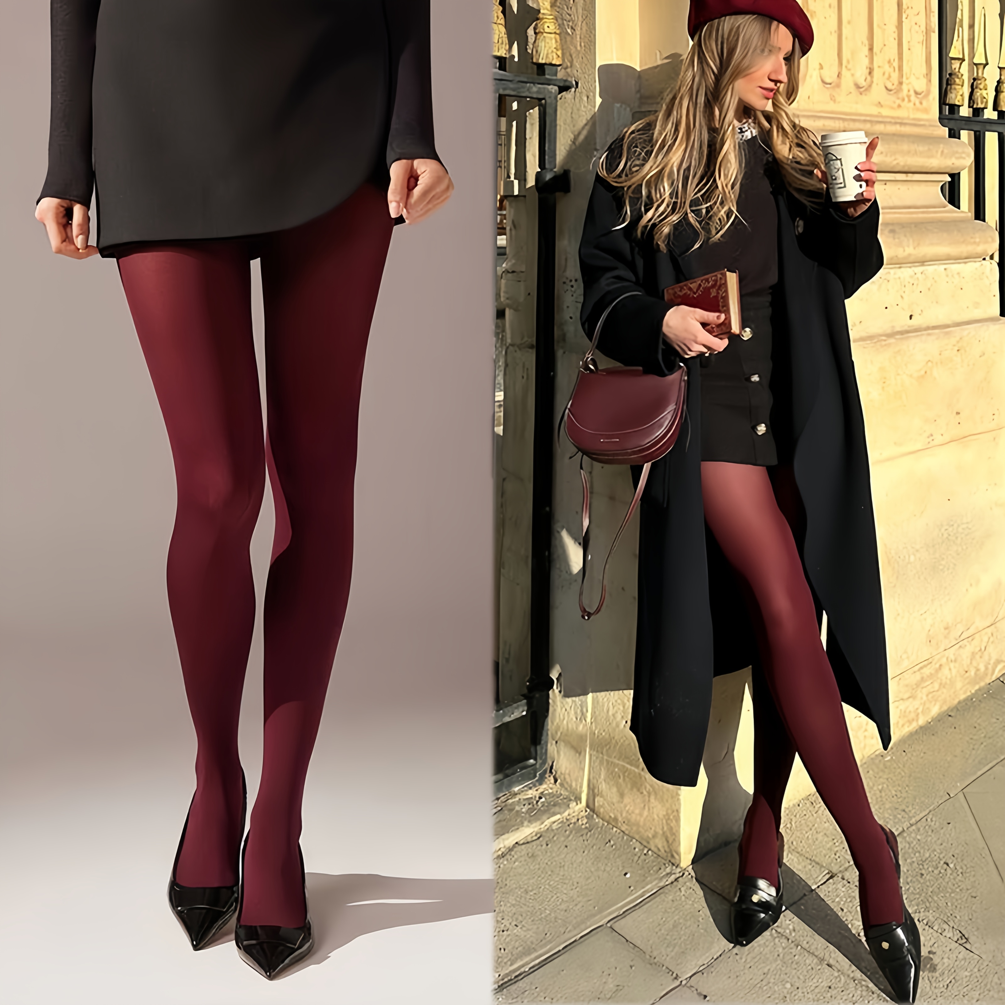 TEMU 여성 버건디 벨벳 타이츠 1켤레 - 높은 탄성 80D, 두껍고 부드러운 질감, 세탁기 사용 가능한 우아한 단색 레깅스, 및 파티용, 다용도 스타일리시 디자인, 파티 레깅스, 우아한 레깅웨어, 벨벳 질감