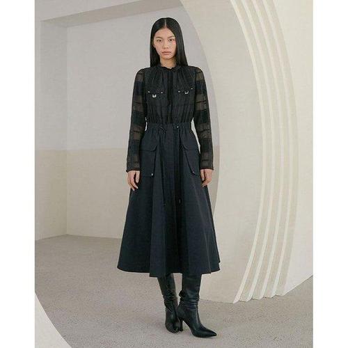 갤러리아_(25봄) 소재 믹스 아웃포켓 포인트 롱 원피스 (ER1WO160)