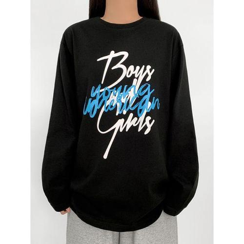 [니까]남녀공용 유스컬쳐 프린팅 오버핏 17수 라운드 긴팔 티셔츠
