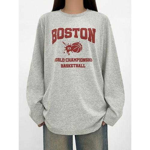 [니까]남녀공용 보스턴 프린팅 오버핏 17수 라운드 긴팔 티셔츠