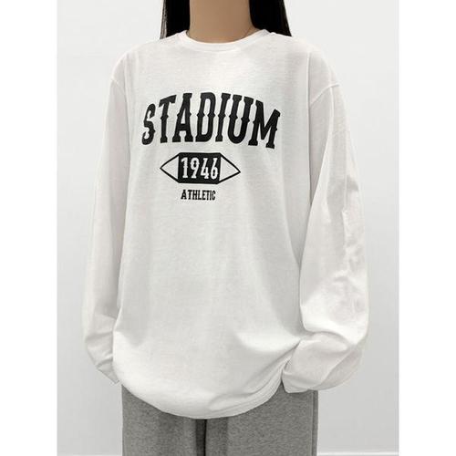 [니까]남녀공용 스타디움 프린팅 오버핏 17수 라운드 긴팔 티셔츠