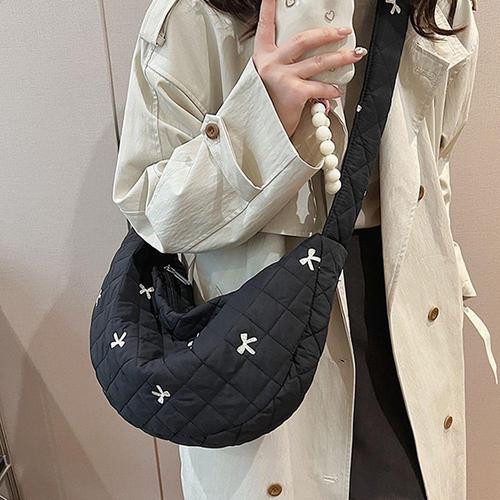 TEMU 가볍고 튼튼한 옥스포드 원단 크로스바디 핸드백 - 조절 가능한 스트랩 & 리본 장식, 지퍼 클로저, 캐주얼 파우치, 오피스, 출퇴근, 일상 사용에 적합 - 스타일리시한 틴에이저용|크로스백