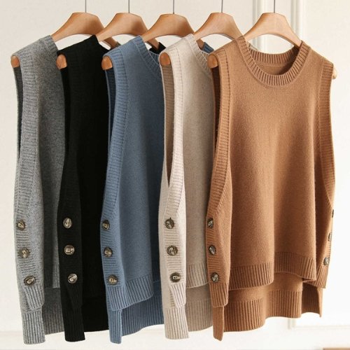 TEMU 솔리드 컬러 여성 라운드넥 베스트 캐주얼 레이어링 스웨터 2025 가을 겨울 탑