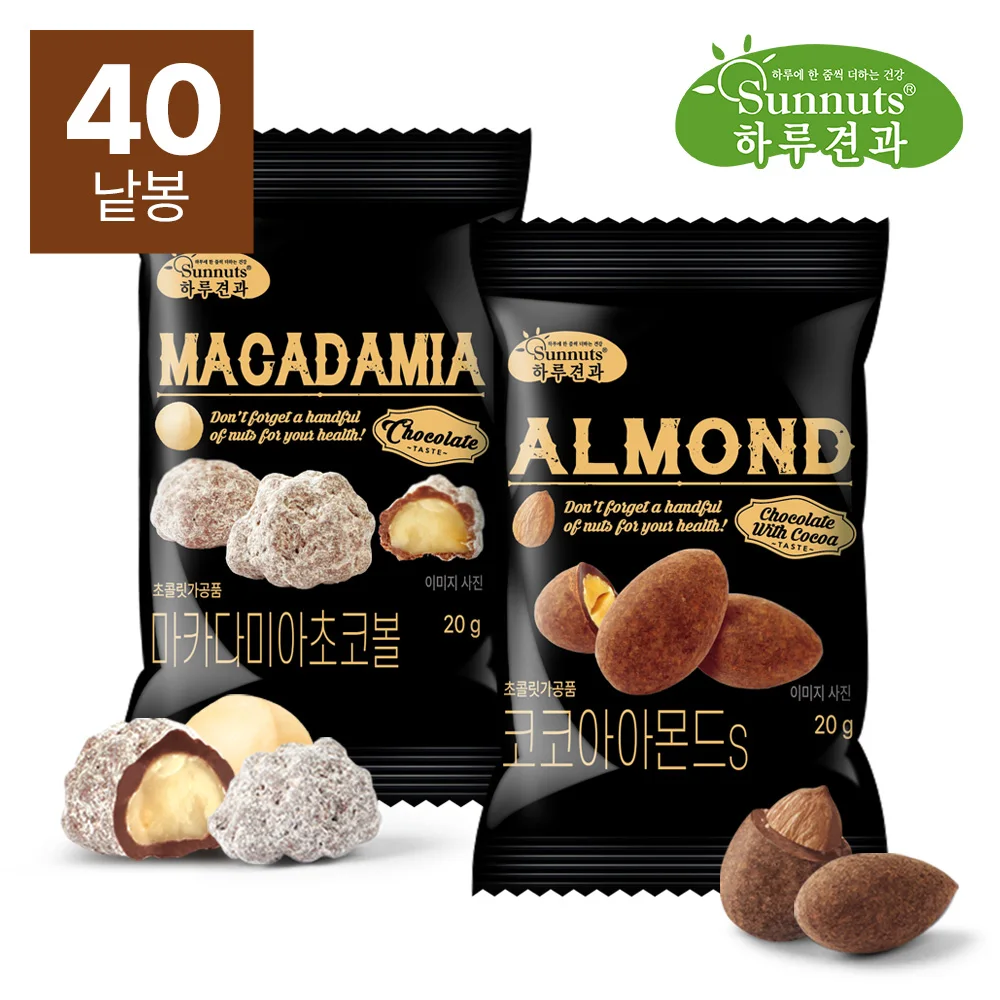 [하루견과] 달콤 간식 코코아아몬드20봉+마카다미아초코볼20봉
