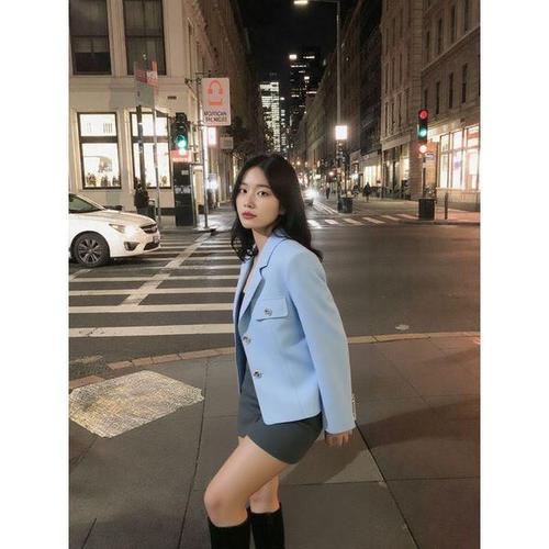 [씨]투버튼 크롭 자켓 멜란지스카이블루 SGJAC2119