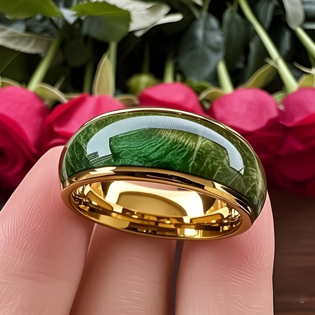 TEMU 남성용 304 스테인리스 스틸 웨딩 밴드 - 녹색 대리석 느낌의 인레이 포인트가 있는 모던한 골드 톤 반지, 광택 마감 및 둥근 모서리 - 기념일, 약혼, 그를 위한 발렌타인데이/아버지의 날 선물 - 남편 남자친구를 위한 데일리 및 정장용 주얼리|반지
