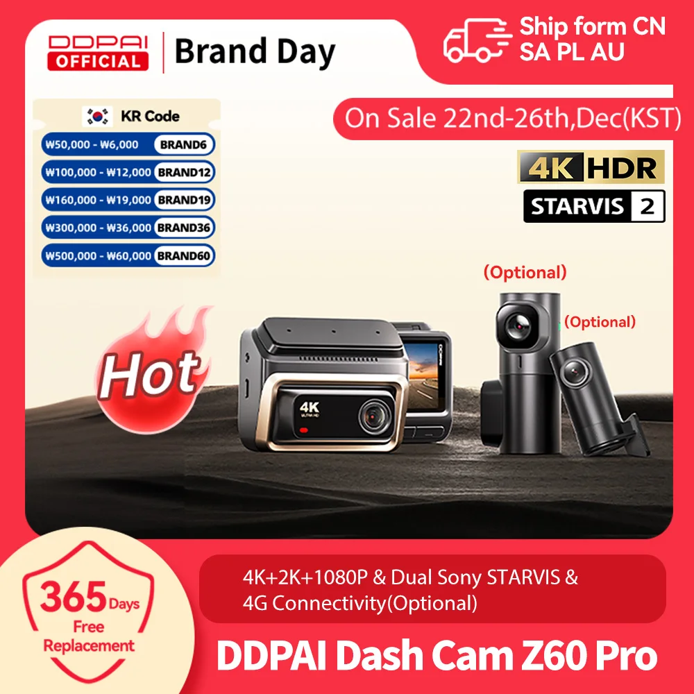 2025 신형 DDPAI Z60 Pro 4K 대시캠 자동차 전방 카메라 소니 센서 WiFi ADAS 야간 시야 DVR 비디오 레코더