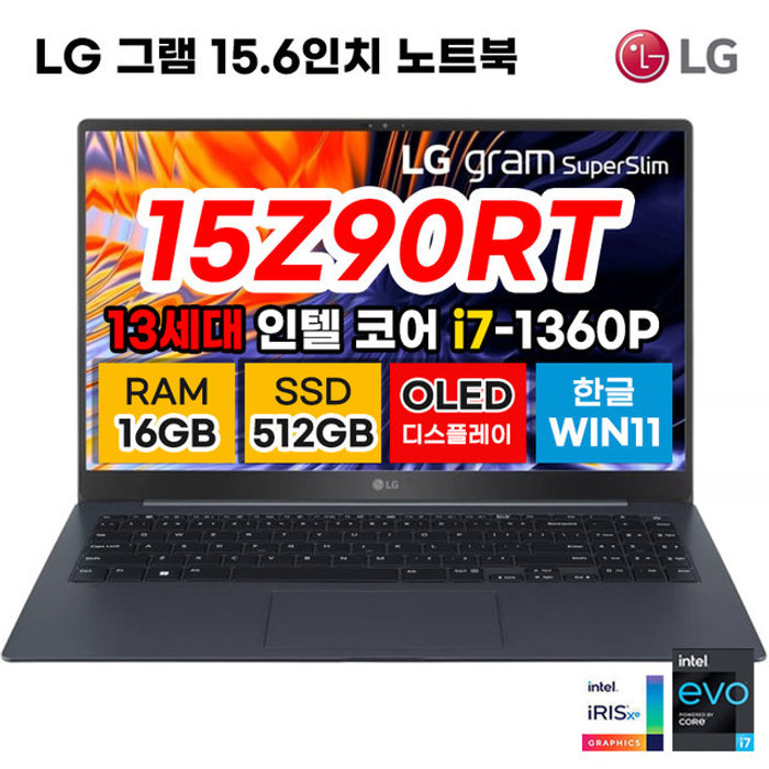 LG전자 lg 그램 15 OLED 패널 39.6cm 노트북 15Z90RT 13세대 i7 16GB 512GB 15.6인치 랩탑 윈도우 포함 초슬림
