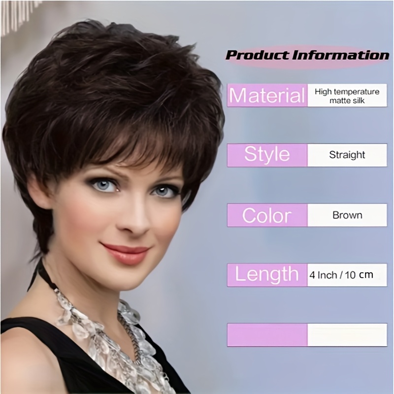 TEMU 4인치 짧은 갈색 곱슬 가발 (사이드 앞머리) - 내열성 합성 모발, 여성 및 남성용, 스타일링 용이, 또는 휴가에 적합, | 패셔너블한 짧은 가발 | 내열성 섬유, 모자가발, 내열성 모발, 통가발
