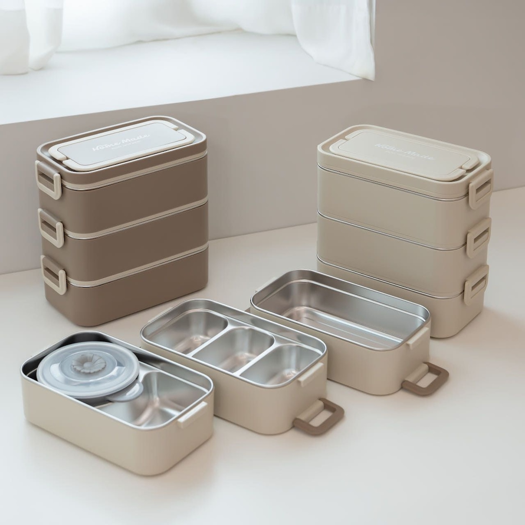 TEMU 누수 방지 스테인리스 스틸 3단 도시락통 - 내구성 강한, 세척 쉬운 학생 및 직장인을 위한 벤토 용기, 전자레인지 사용 가능, 백투스쿨