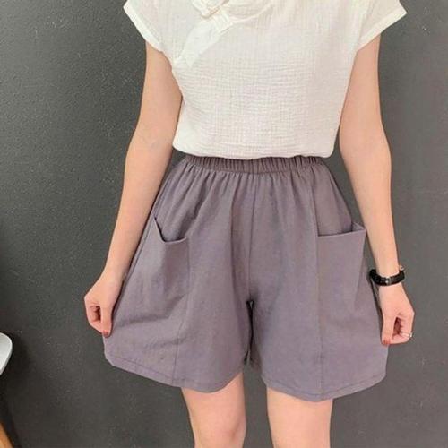 여성 여름 반바지 밴딩 3부 버튼 뒷포켓 장마철 스타일